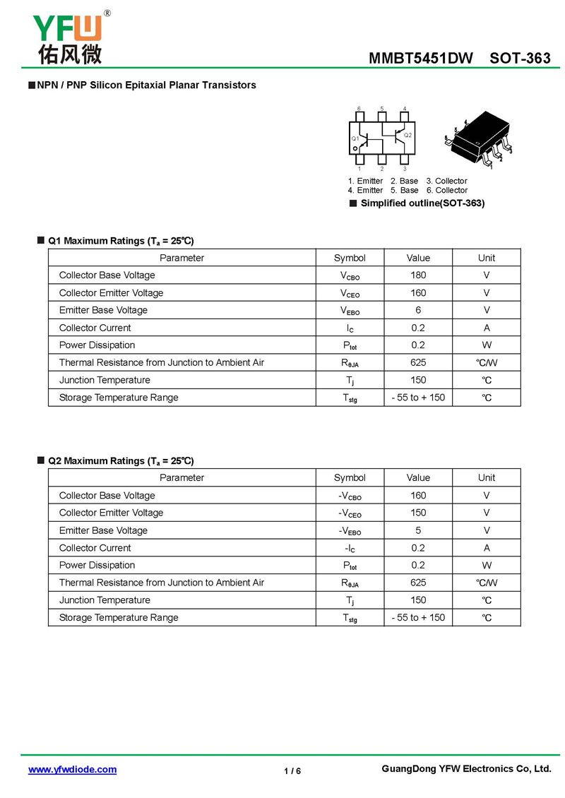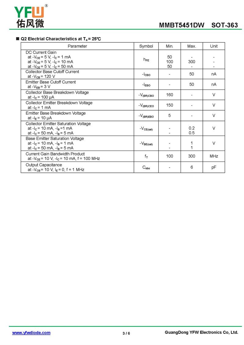 diode MMBT5451DW Specifications_Price_PDF sheet data-yfw diode Factory MMBT5451DW SOT-363_(YFW diode)Brand