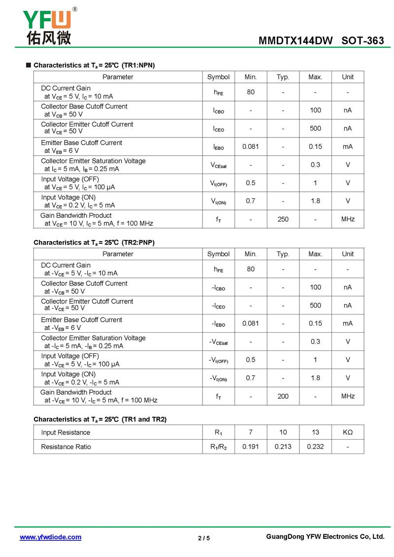 diode MMDTX144DW Specifications_Price_PDF sheet data-yfw diode Factory MMDTX144DW SOT-363_(YFW diode)Brand